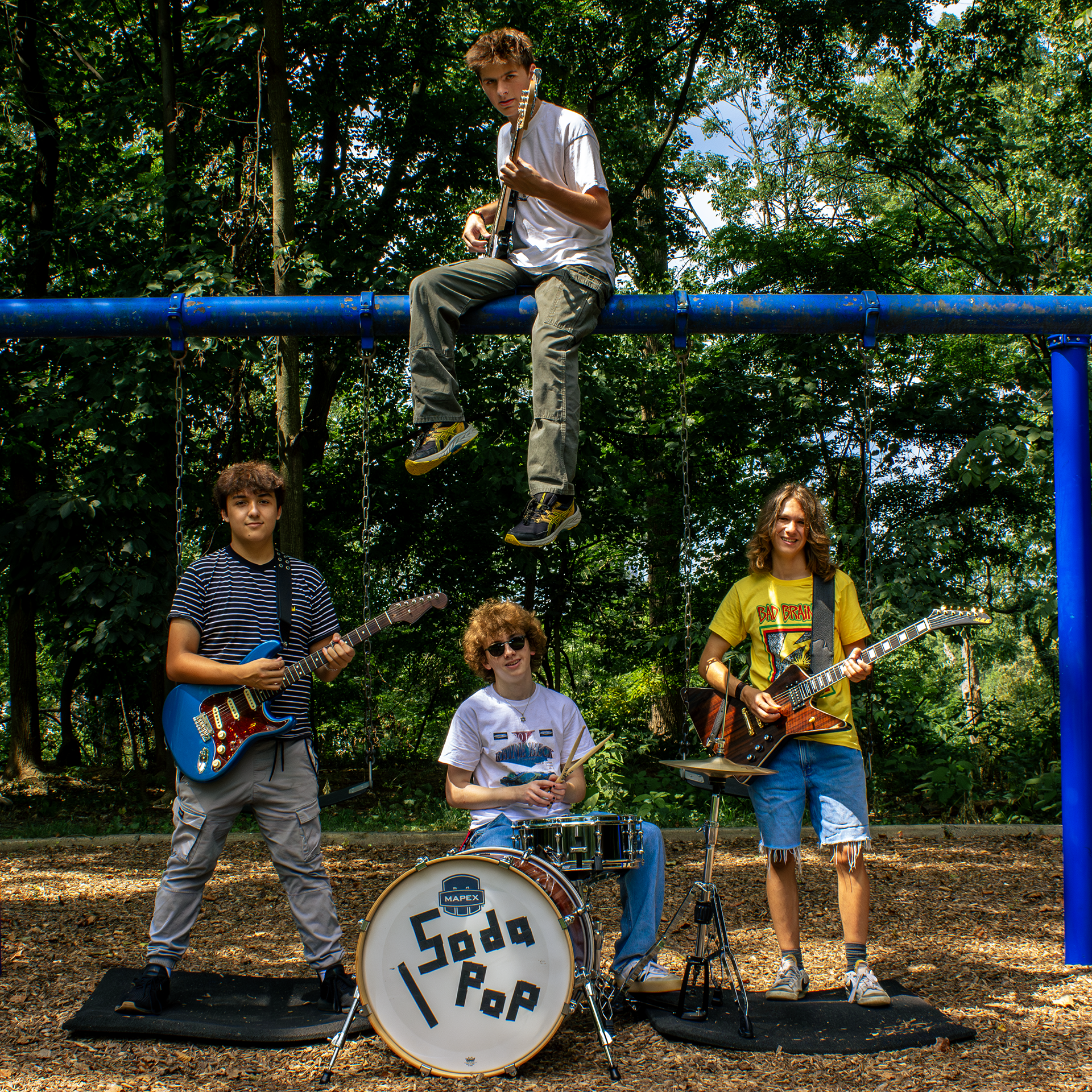 Soda Pop are a garage/classic rock band based in the D.C. metro area, with a style derived from the sounds of Arctic Monkeys, Jimi Hendrix, and The Strokes. Formed in H-B Woodlawn Secondary School in August of 2023, they started playing covers at Woodlawn's events before moving on to playing around the Arlington area. Soda Pop are now currently working on original music and are made up of: